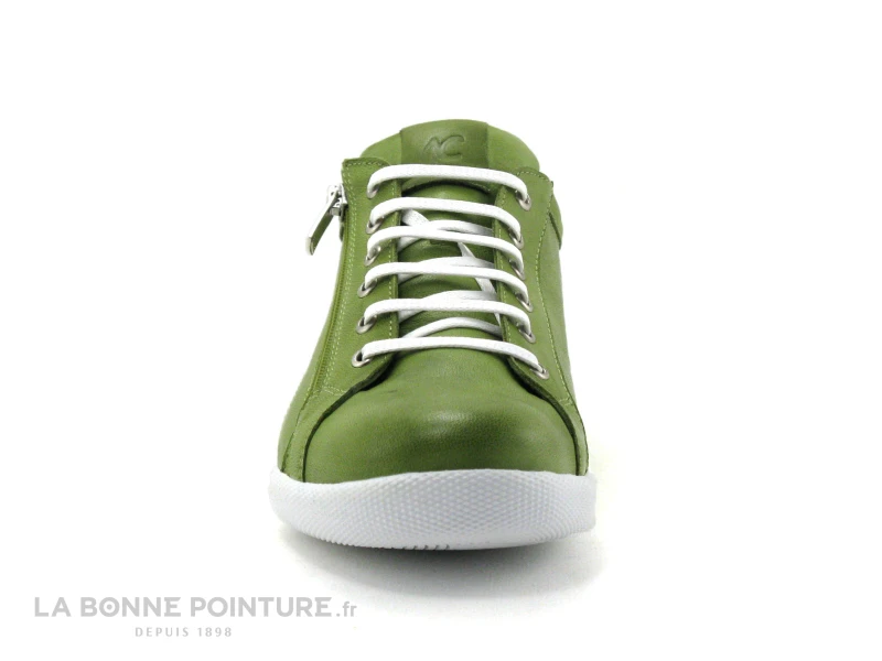 Cette basket basse Femme trĂšs souple est fabriquĂ©e avec un beau cuir vert, Ă l’aspect veinĂ© et nuancĂ©.