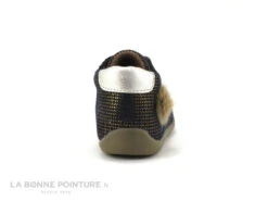 Ce bottillon fillette Bellamy de grande qualité est en cuir velours bleu imprimé Or, avec une partie métallisée à l’arrière.
