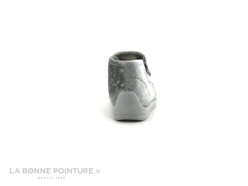 Ce chausson avec licorne Bellamy Kub est en velours gris clair, avec une licorne rose brodée à l’avant.