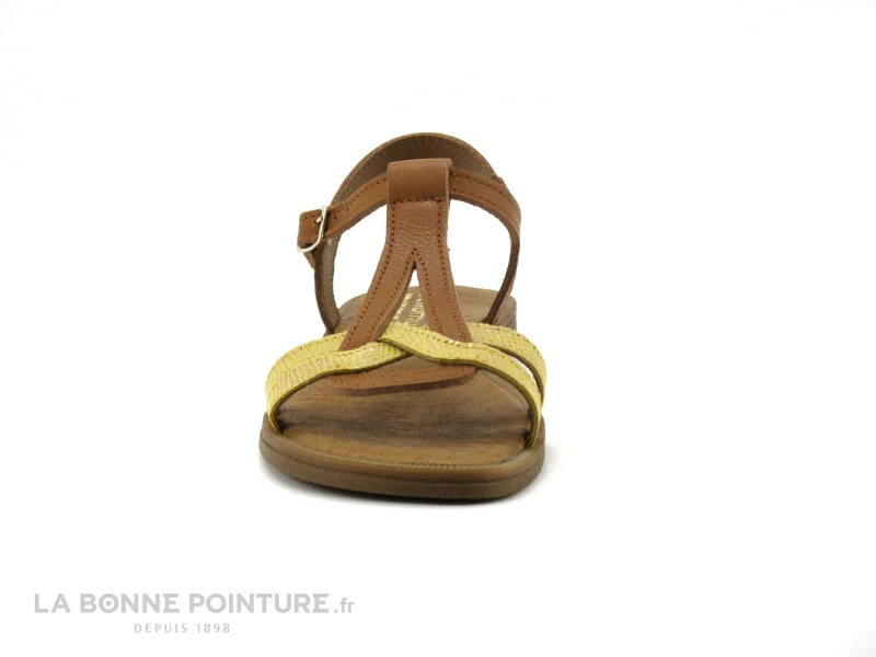 Fabrication française et grande qualité pour ces ravissantes sandales fille entiÚrement en cuir Bellamy Tilou marron jaune doré !