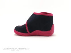Cette pantoufle bébé fille Bellamy Vana est en velours bleu marine, avec le pourtour fuchsia.