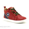Ces belles sneakers montantes bébé garçon Bopy Jejoc sont en cuir velouté marron clair (caramel), avec une petite partie bleu marine à l’arrière.