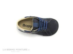 Le bottillon Bopy Zanatol se ferme avec un lacet bleu, traversant 5 oeillets métalliques.