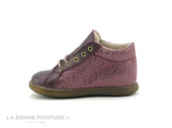 Ce bottillon fille mélange cuir métallisé et cuir velours, aux tons de bordeaux / violine, de vieux rose et de beige doré.