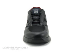 Cette basket mode et confort Homme Callaghan 51104 adaptée pieds larges est noire avec du gris et du bordeaux au niveau du contrefort.