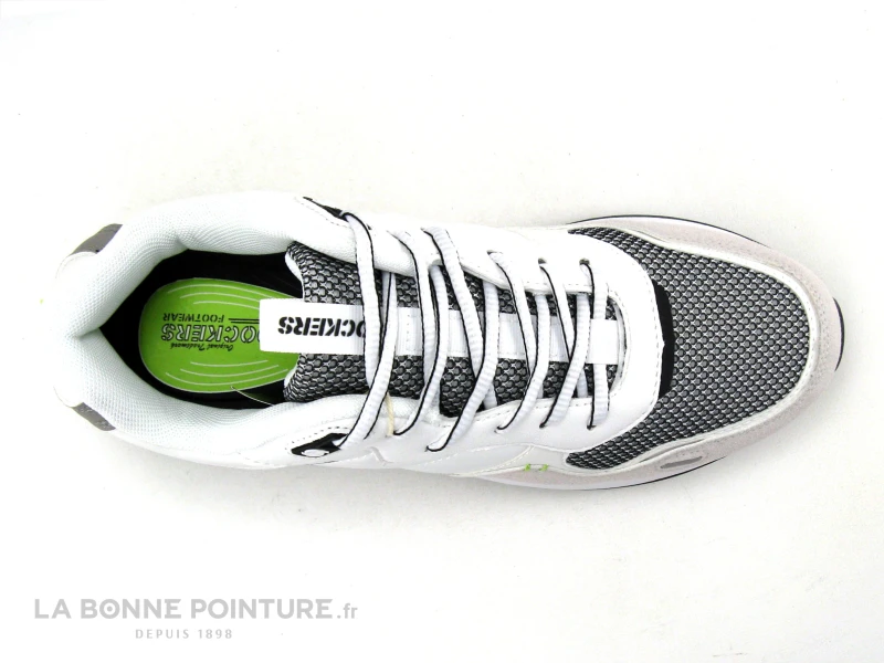 Le lacet bicolore noir et blanc traverse 6 oeillets afin de lacer efficacement la basket Dockers Homme.