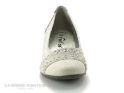 Cette chaussure femme est en simili cuir beige, avec un empiècement bronze à l’arrière.