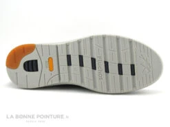 Cette basket de ville Homme Fluchos est en cuir velouté bleu marine finement poinçonné, avec un peu de blanc cassé et d’orange.