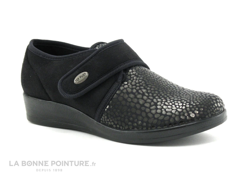 Souples, légères et confortables, les pantoufles Femme noires à scratch Fly Flot Falkine !