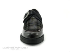 Cette chaussure Femme grande largeur est composée de cuir velours imprimé et de cuir verni aspect métallisé.