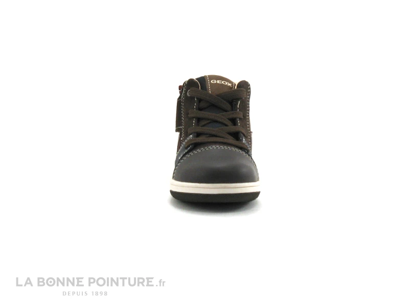 Cette chaussure montante premiers pas Geox Flick combine des empiÚcements aux tons de marron et de bleu marine.