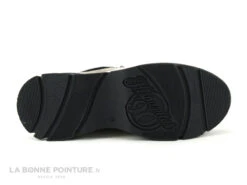 La semelle de marche épaisse caractérise encore plus cette belle chaussure Hispanitas Bolero, beige et noire avec des nuances.
