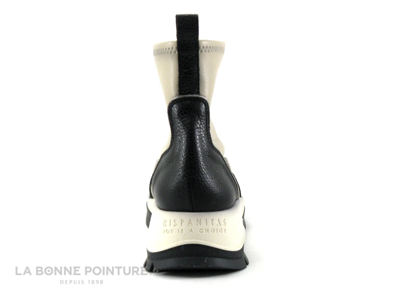 Ces belles boots Hispanitas Bolero sont bicolores beiges et noires, combinant cuir et stretch beige.