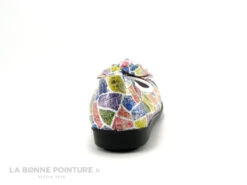 Cette chaussure Femme Inéa Eclat est en cuir imprimé de petits pavés multicolores, avec un bel aspect quadrillé et des reflets métallisés dorés.