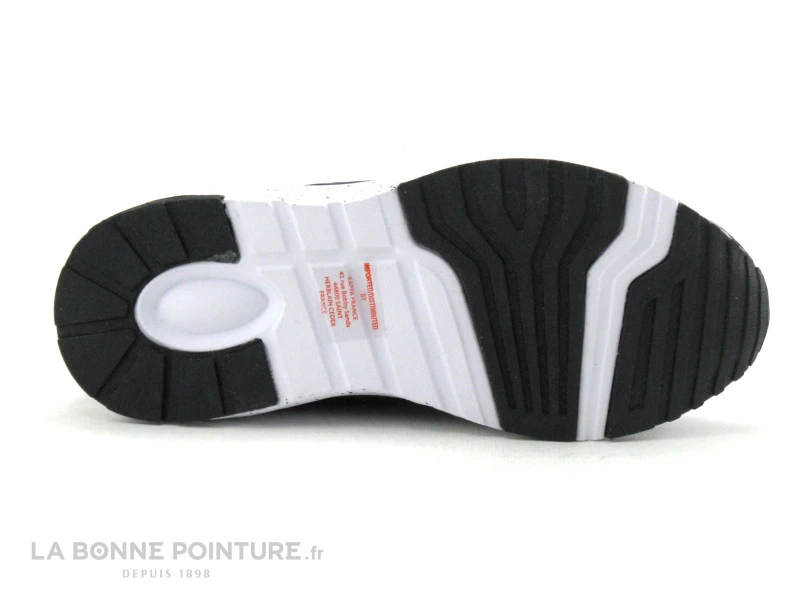 Pas de languette, ces tennis mode Kappa SanAntonio s’enfilent facilement et se resserrent grâce au lacet bleu marine.