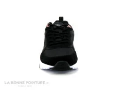 Cette basket slip-on fille ou Femme Kappa est en tissu maille et matières synthétiques noirs, avec la semelle qui flashe en rose fuchsia et violet.