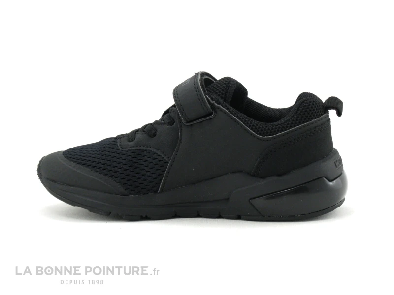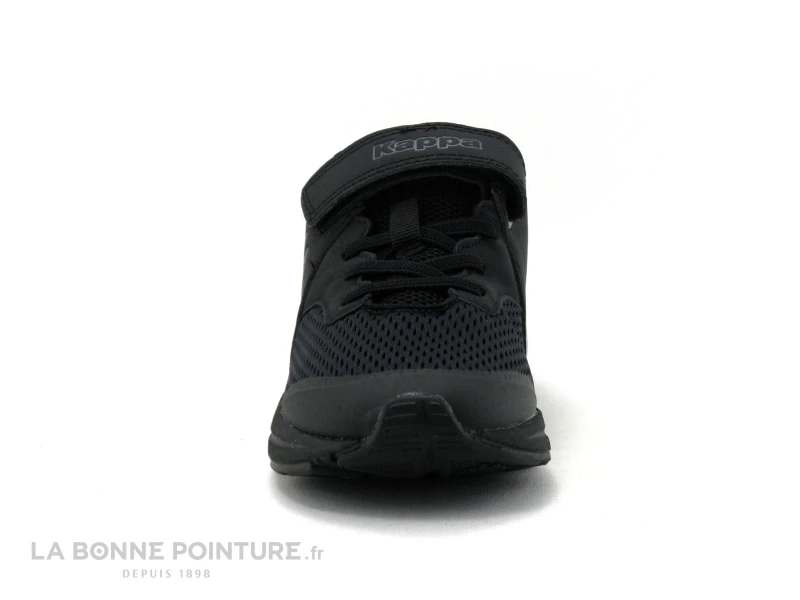 Cette chaussure de running enfant Kappa est en tissu maille et matiÚres synthétiques résistantes noir et gris foncé.