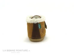 Ces boots fourrĂ©es bĂ©bĂ© fille ou garçon Kickers Somoons sont en cuir velours marron camel, avec du marron foncĂ© Ă l’arriĂšre.