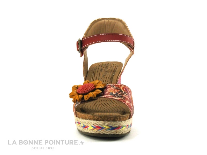 Originales et fabriquées artisanalement, ces superbes sandales rouges à talon compensé Laura Vita Facyo 06 !
