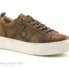 Le large lacet blanc passe à travers 6 autres oeillets pour fermer la basket marron Les Petites Bombes Kelly.