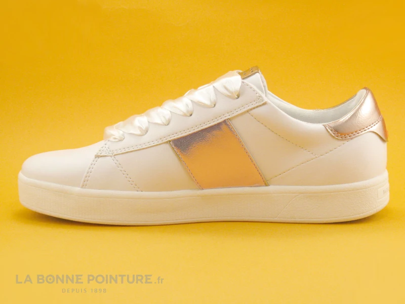 On craque pour ces jolies baskets mode Femme blanches et rose métal signées Marco Tozzi !