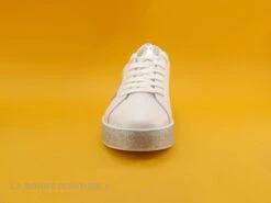 Elles se démarquent avec leur semelle pailletée argent et leur pointe légèrement effilée, les sneakers blanches Marco Tozzi 2-23714-32 !