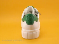 Ces sneakers Femme Marco Tozzi sont en simili cuir blanc, avec des empiècements verts à l’arrière et sur la languette.