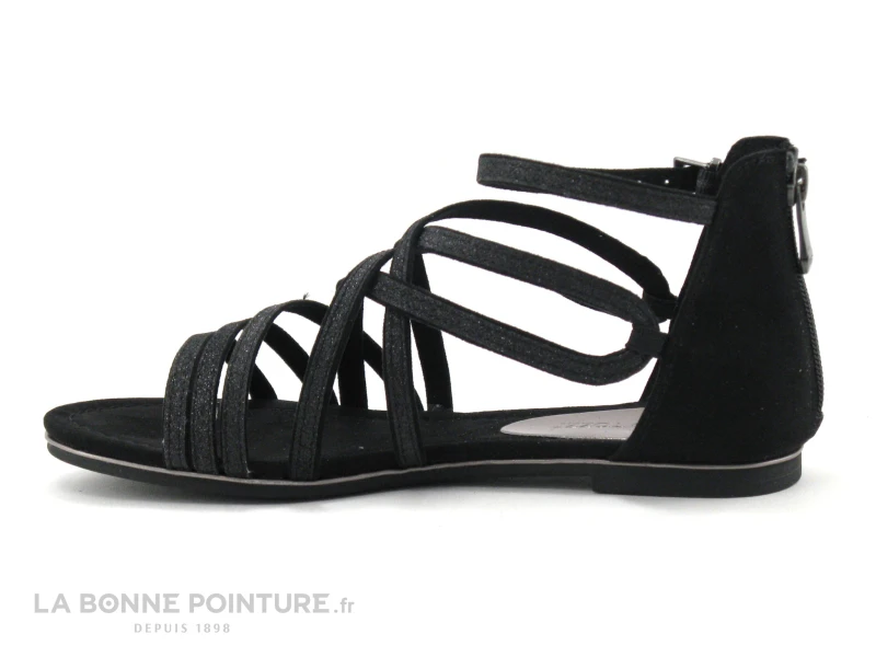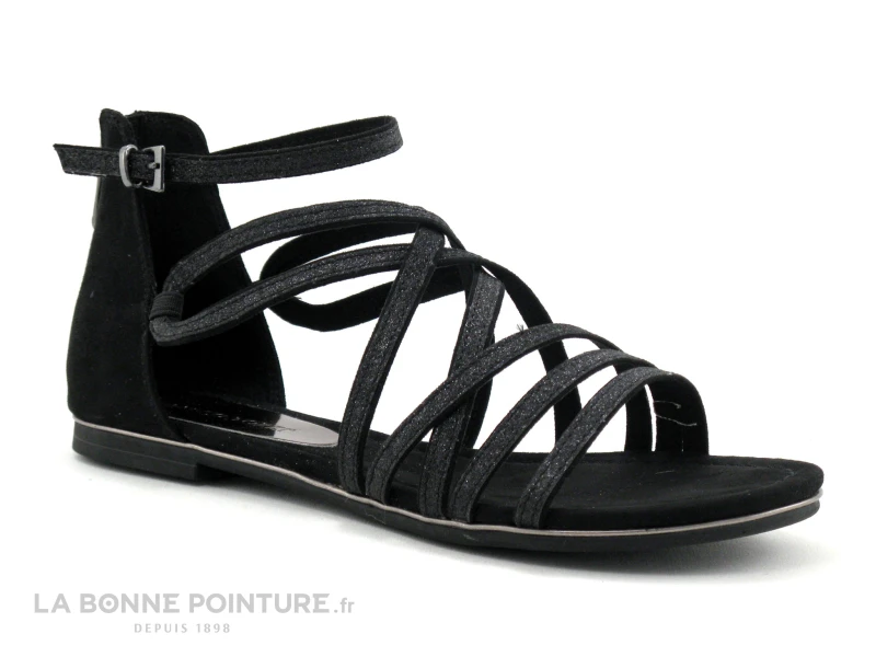 Envie de sortir sans vous ruiner, voici la sandale Marco Tozzi 2-28180-26 noire pailletée qui apportera une élégance discrÚte à vos tenues estivales.