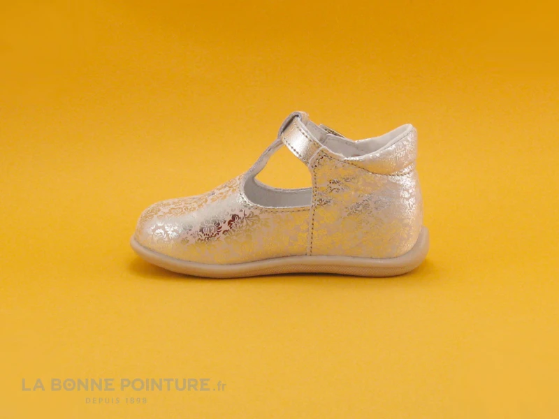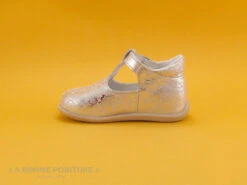 La bride salomé est traversée par une laniÚre argentée à boucle, elle se rÚgle sur 7 positions pour fermer la sandale Minibel Malika.