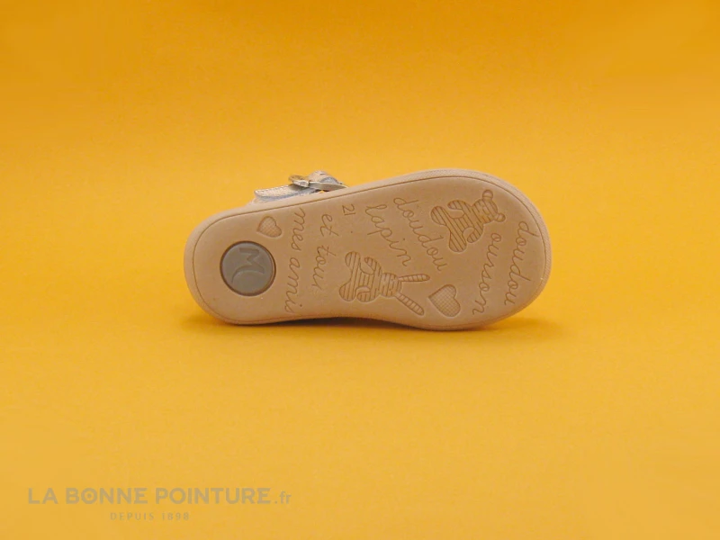 Des tons mode de rose nude et d’argent pour ces ravissantes sandales bĂ©bĂ© fille Minibel Malika !