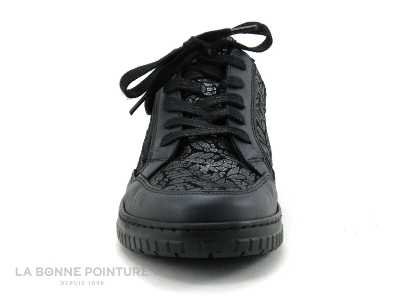 Fantaisie sans en faire trop, ces jolies baskets de ville Femme en cuir noir et argent au très bon rapport qualité / prix !