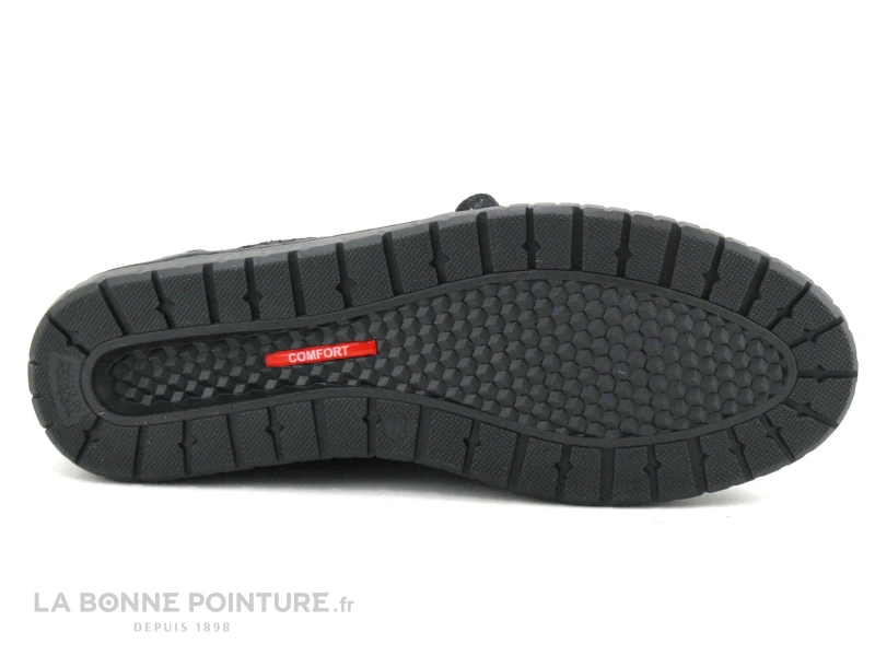 La semelle de marche noire de la chaussure Moran’s Femme est souple, épaisse d’environ 2 cm au talon.