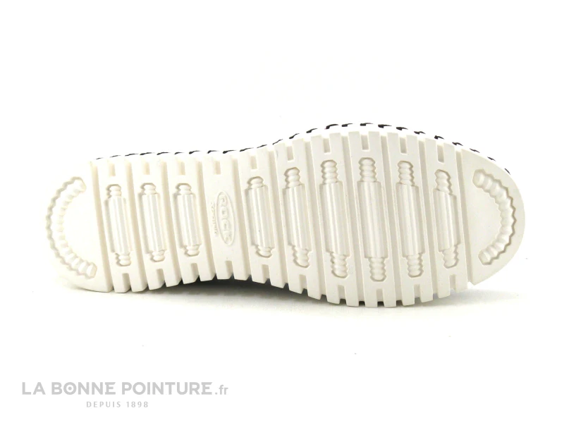 La semelle de marche blanche est compensĂ©e, flexible et trĂšs lĂ©gĂšre, avec un talon d’environ 2.5 cm.