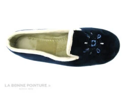 Pas chères, confortables et toutes souples, les pantoufles Femme bleu marine avec broderie !