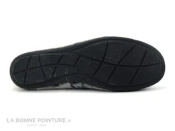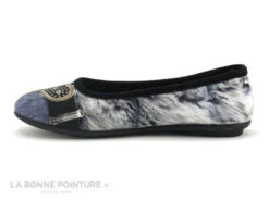 Cette ballerine d’intérieur est en textile velouté aux tons de bleu et de gris, avec un liseré noir sur le pourtour.