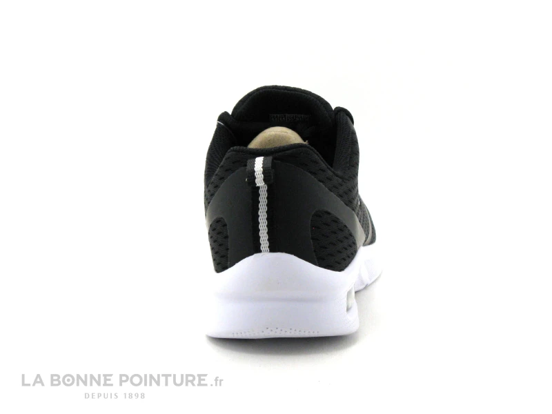 Cette basket Skechers noire est en textile et matières synthétiques, avec la marque Skechers en blanc sur la languette.