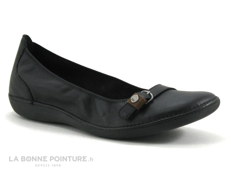 Cette ballerine femme est en cuir de qualité noir, ornée d’une bride sur le devant avec un petit passant marron, pour un brin de fantaisie.