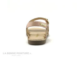 Ce nu-pieds enfant Les Tropéziennes Isidor est en cuir rose clair et doré, avec des petits cercles pailletés sur le devant.