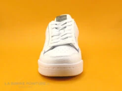 Cette basket mixte est en toile blanche avec la semelle qui remonte sur la pointe.
