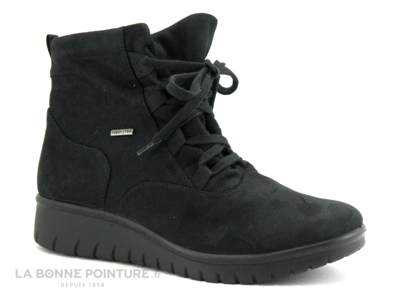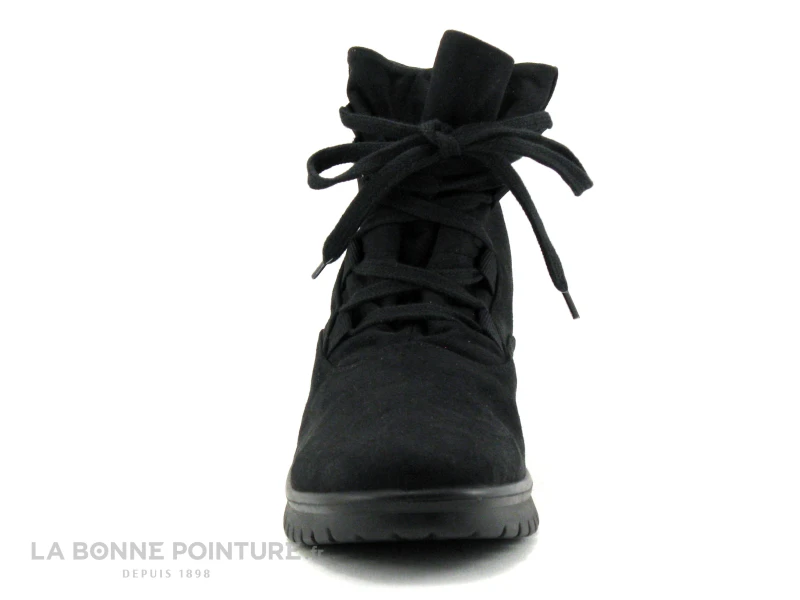 Ces boots d’hiver Femme sont en amaretta noir, un textile rĂ©sistant au bel aspect veloutĂ©.