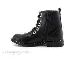 La semelle de marche est ornée de petits clours argentés sur le pourtour. Le talon du bottillon noir fille mesure environ 2 cm.